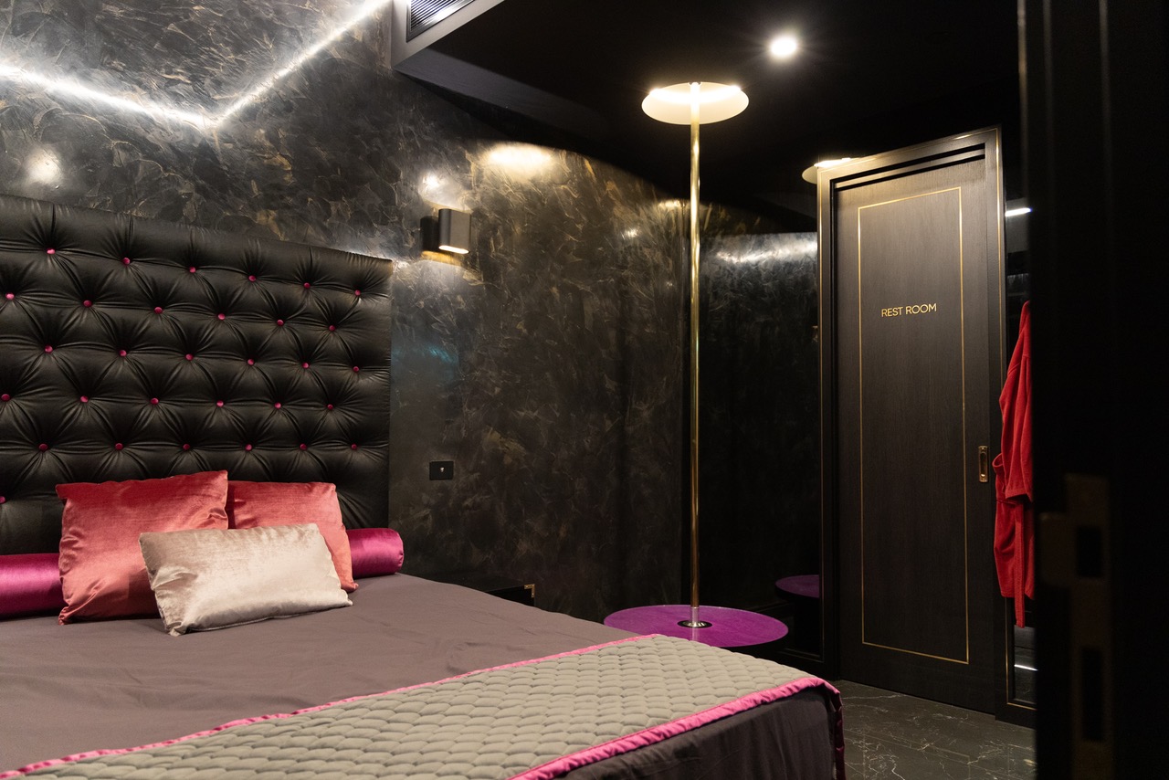 Each large room has it's own luxury rare marble tiled en-suite bathrooms, large size white embodied towels, queen size beds, huge large screen plasma television screens with a range of X-rated adult movies, multi-channel music, mood lighting, fresh water jet spas, stripper poles, ceiling to floor mirrors, reverse cycle air conditioning and in-room bar fridges complete with complimentary non-alcoholic beverages.